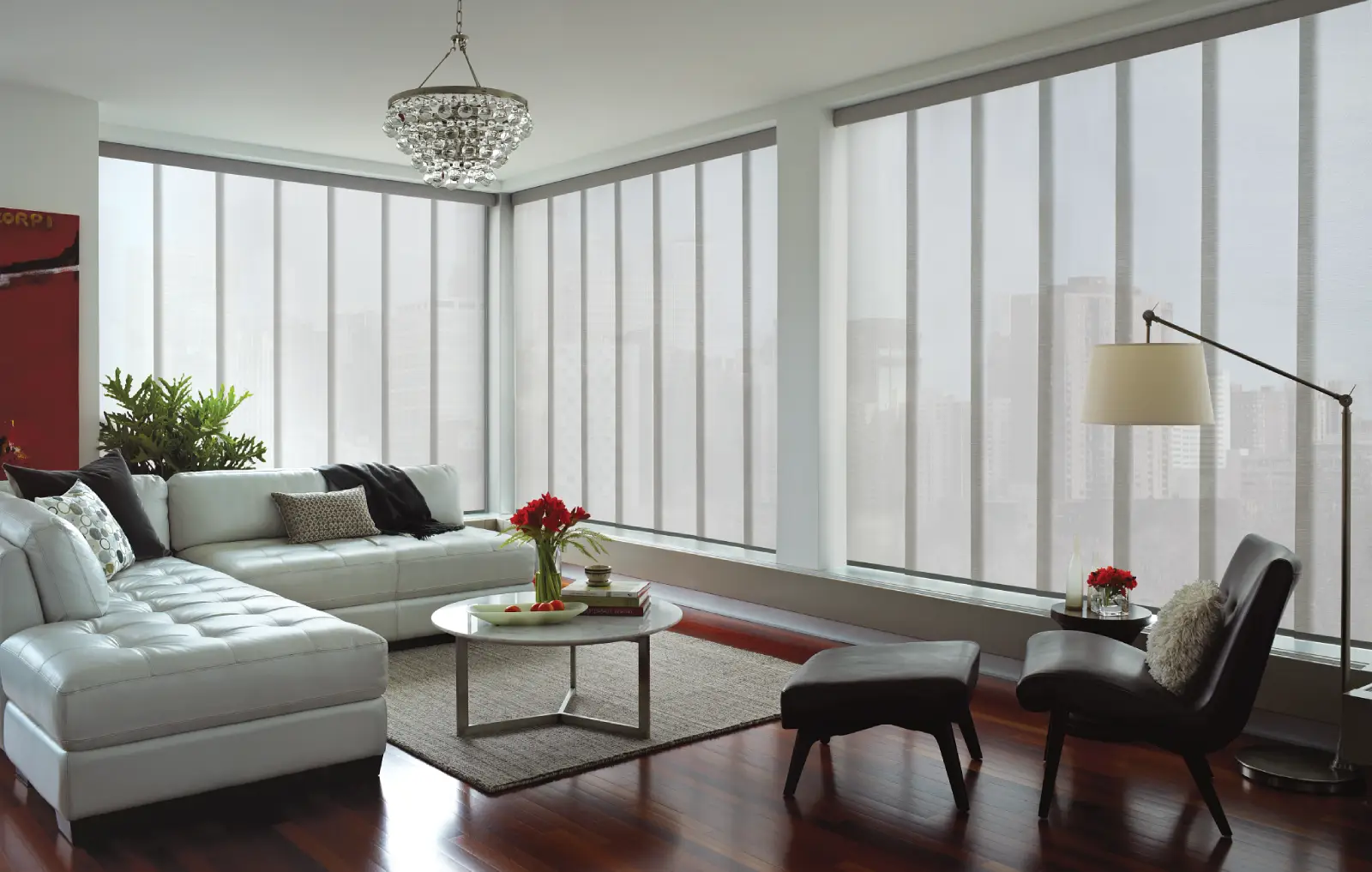 Designed for short, tall or wide windows, Skyline® Gliding Window Panels stack tightly and provide unobstructed views when open.